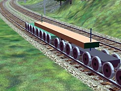 Pour représenter une locomotive à 3 bogies, ne pas utiliser "Bogie3" et on peut soit rattacher les essieux du "faux" bogie central à chacun des bogies extrêmes (tous les essieux suivront correctement la voie), soit les rattacher à la caisse (ces essieux flotteront vers l'intérieur des courbes).