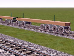 Les éléments Wheels1 à 4 ne semblent pas fonctionner sur le matériel remorqué, ce qui réduit les possibilités ! De même, les animations implicites de "Wheels31, Wheels32, Wheels33" n'ont pas l'air de fonctionner non plus... (peut-être bug de TSM?). Il ne reste donc que 6 essieux disponibles... ce qui nécessite de scinder des wagons complexes en plusieurs "sous-wagons".Si vous avez des compléments d'information ou des corrections à apporter sur le sujet, n'hésitez pas à m'en faire part...