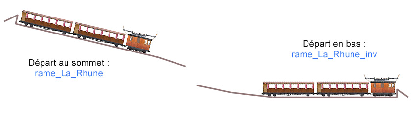 Version 1 de la rame disponible. La modélisation a été réalisée à l'aide de photos sans pouvoir disposer de plans précis : les dimensions sont estimées et non exactes, de même pour la cabine simplifiée. Cette rame est faite pour fonctionner sur des rampes atteignant 20 à 25% à une vitesse inférieure à 10 km/h. Sur le plat, la vitesse est limitée à environ 30 km/h. La conduite n'est en rien semblable à celui de la rame réelle : en pente, le freinage rhéostatique limite les emballements mais il faut surtout utiliser le frein de locomotive au dosage plus précis. Toute suggestion constructive est la bienvenue.
